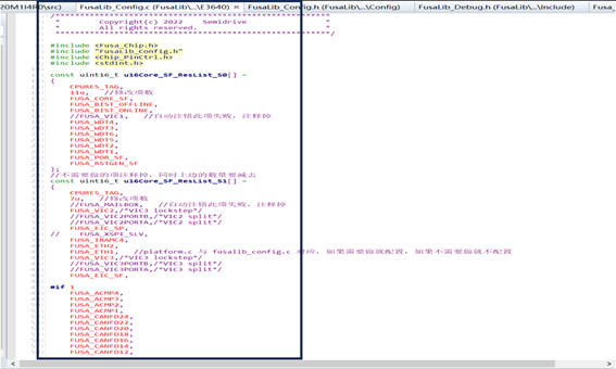 5、Part_Config.h 資源配置見《Semidrive E3 MCAL3.0&FusaLib PTG1.1 功能安全開發(一)》第三章問題 3。