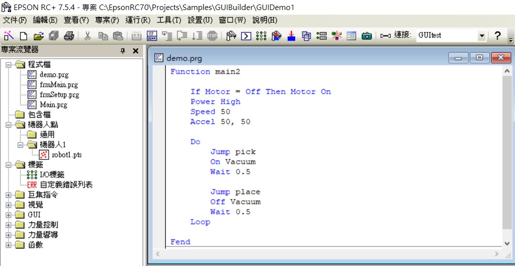 而且對於軟體初學者來說,設計好的介面可以直接使用EPSON的機器人指令來做整合,不須額外學習或是購買第三方軟體即可有基本的操作畫面來控制EPSON Robot的運行或是監控狀態。