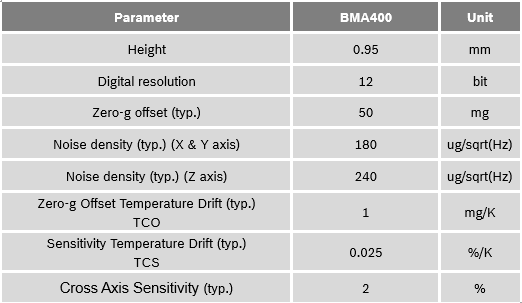 BMA400是博世傳感器技術中唯一具有超低功耗特性的產品。關鍵參數列在下表中。