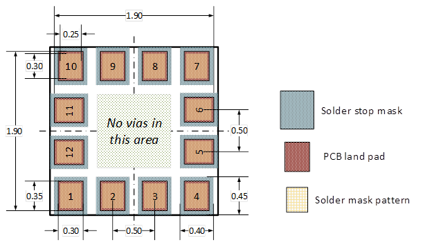 - LGA封裝(12引腳),尺寸2mm x 2mm x 0.95mm