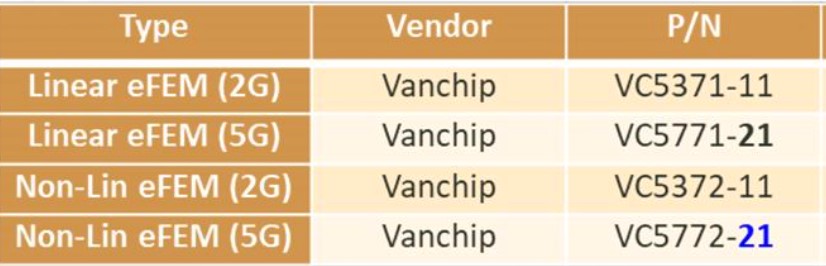 Vanchip Wi-Fi7 FEM MTK DRL 列表 :