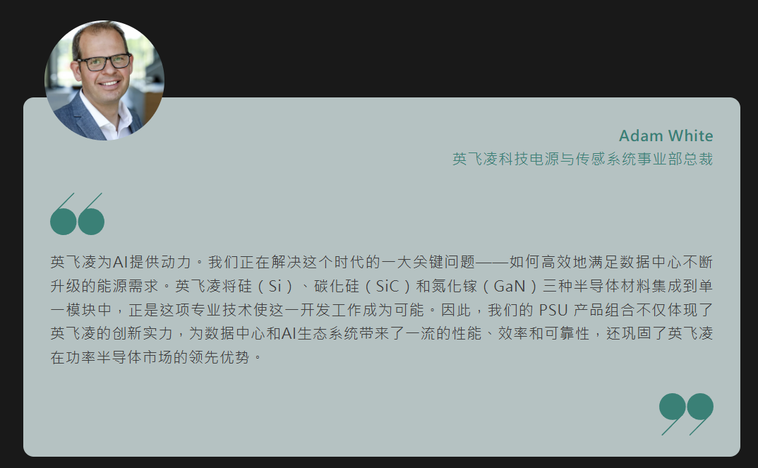 基於矽(Si)、碳化矽(SiC)和氮化鎵(GaN)的新型電源裝置(PSU)鞏固了英飛凌在AI電源領域的領先優勢