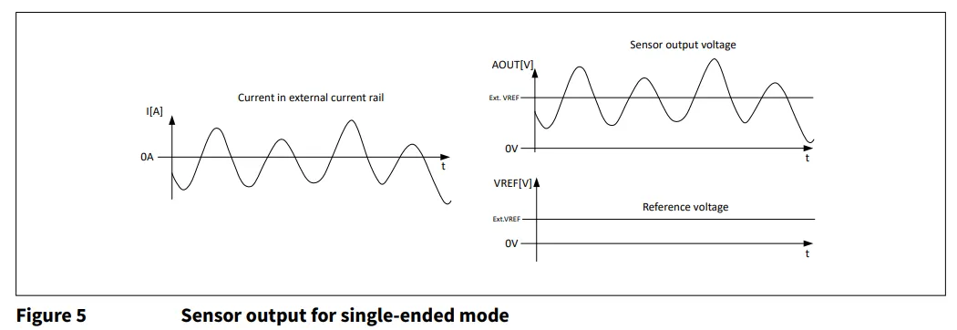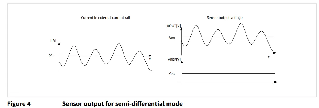 TLE4973後綴為S0001的產品可以配置為單端輸出、半差分輸出、全差分輸出模式,採用差分輸出模式在輸出信號PCB走線較長時可提高抗干擾能力,同時可提高測量精度。