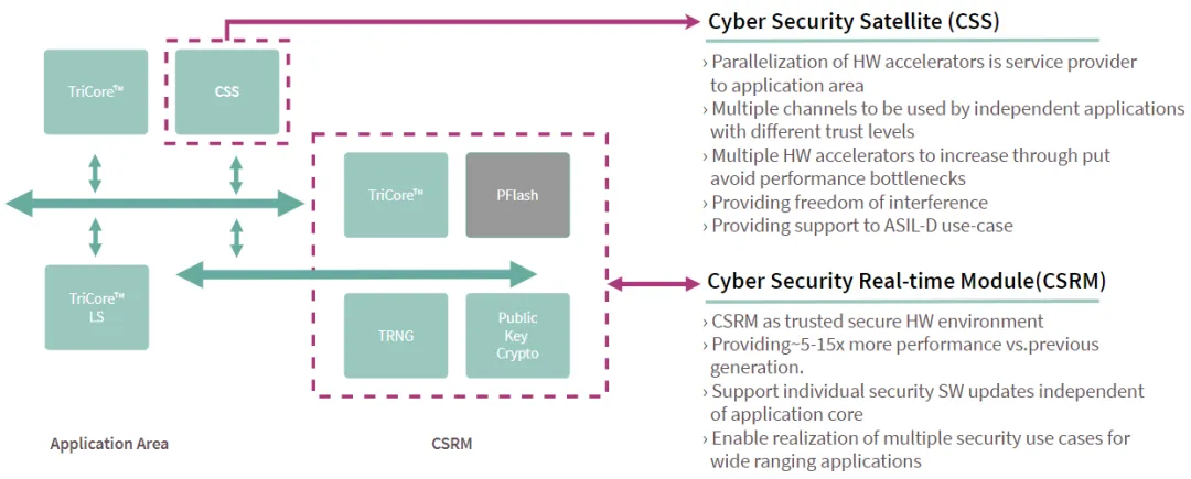 AURIX™ TC4x,我們即將推出的微控制器系列,配備了一個創新的安全簇。我們的安全簇支持新功能和算法,並提供最新的硬體加速,與前幾代相比,能夠提供更高的性能。