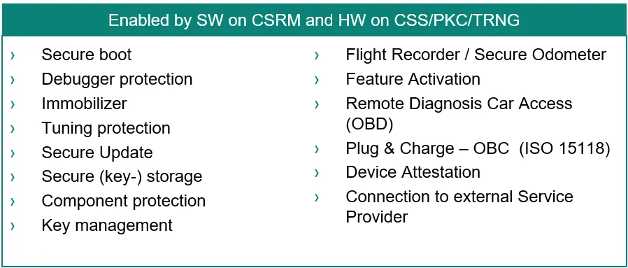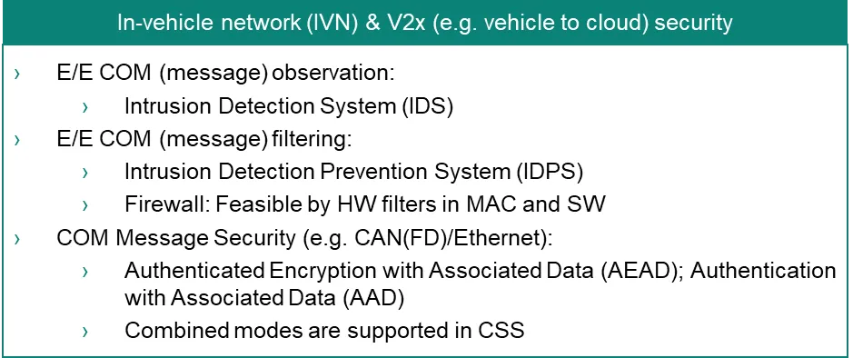 網絡安全簇的一個關鍵特徵是,它支持各種網絡安全用例,特別關注通信需求,這些需求在不斷發展的車輛E/E電子電氣架構中不斷增加。以下是TC4x支持的常用安全用例。
