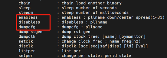 (1)在 safety 串口下輸入help 查看有哪些可用的 pll 調試命令。