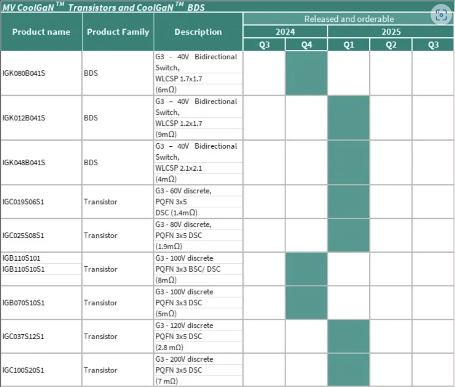 CoolGaN™ G3 中壓電晶體,覆蓋了 60 V、80 V、100 V 和 120 V 的 CoolGaN™ 電晶體電壓等級,以及 40 V 雙向開關(BDS)器件,主要面向電機驅動、電信、數據中心、太陽能和消費應用