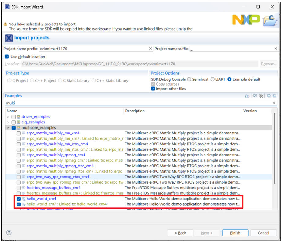 1. 從 SDK 選擇 multicore_examples à Hello world