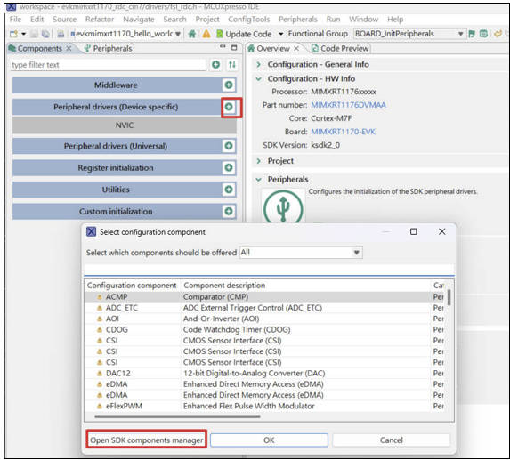 4. 在 Peripheral 右邊 Components à Peripheral Drivers(Device specific) 右邊加號,在 Select configuration components 頁面點選 Open SDK components manager