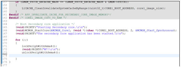 lockPeriphWithSema4(); (void)PRINTF("M7!\r\n"); unlockPeriphWithSema4(); |