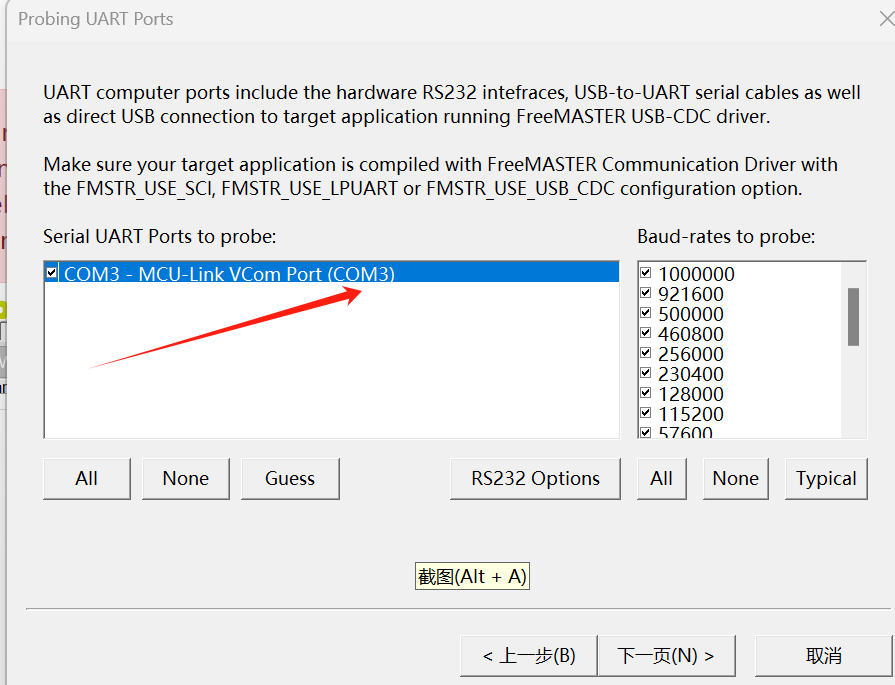 在 FreeMaster 菜單欄 Tools ---> Connection Wizard 指南中選擇串口號後連接 MCU。