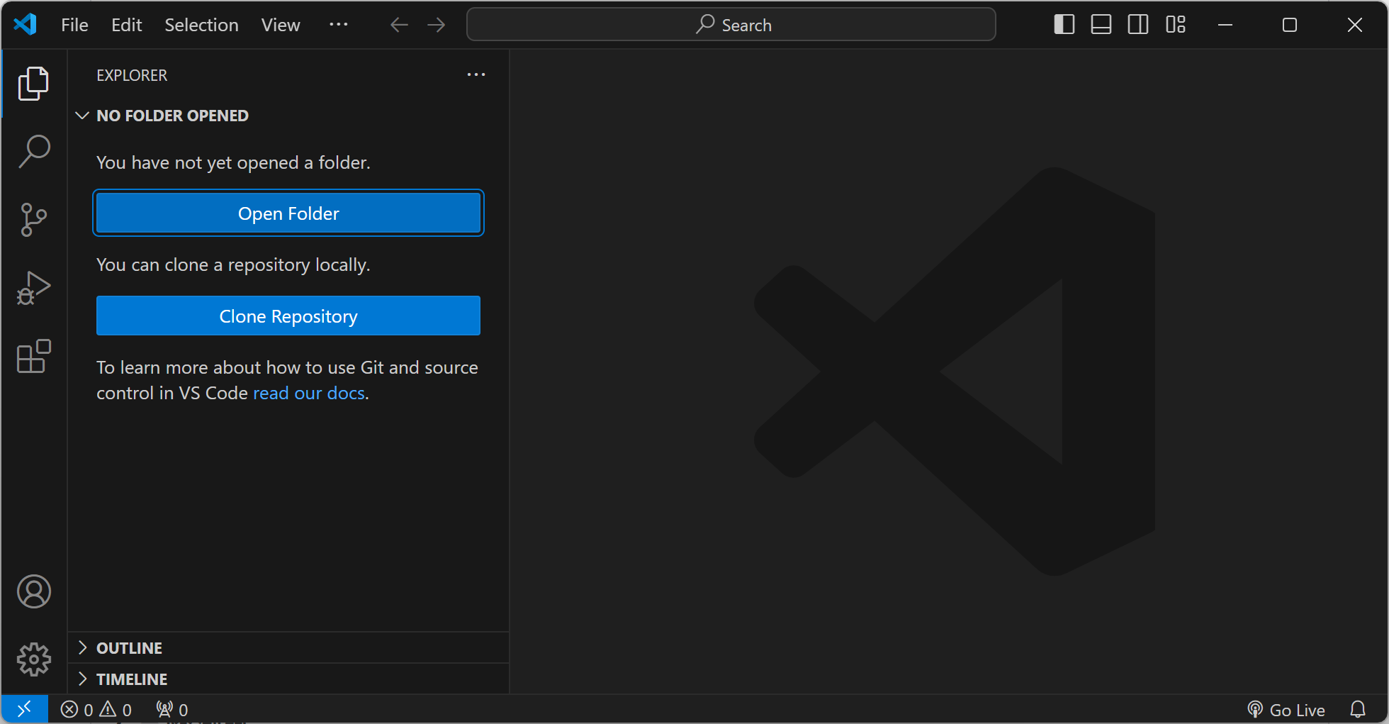 - 開啟 VS Code 並選擇一個開發用資料夾