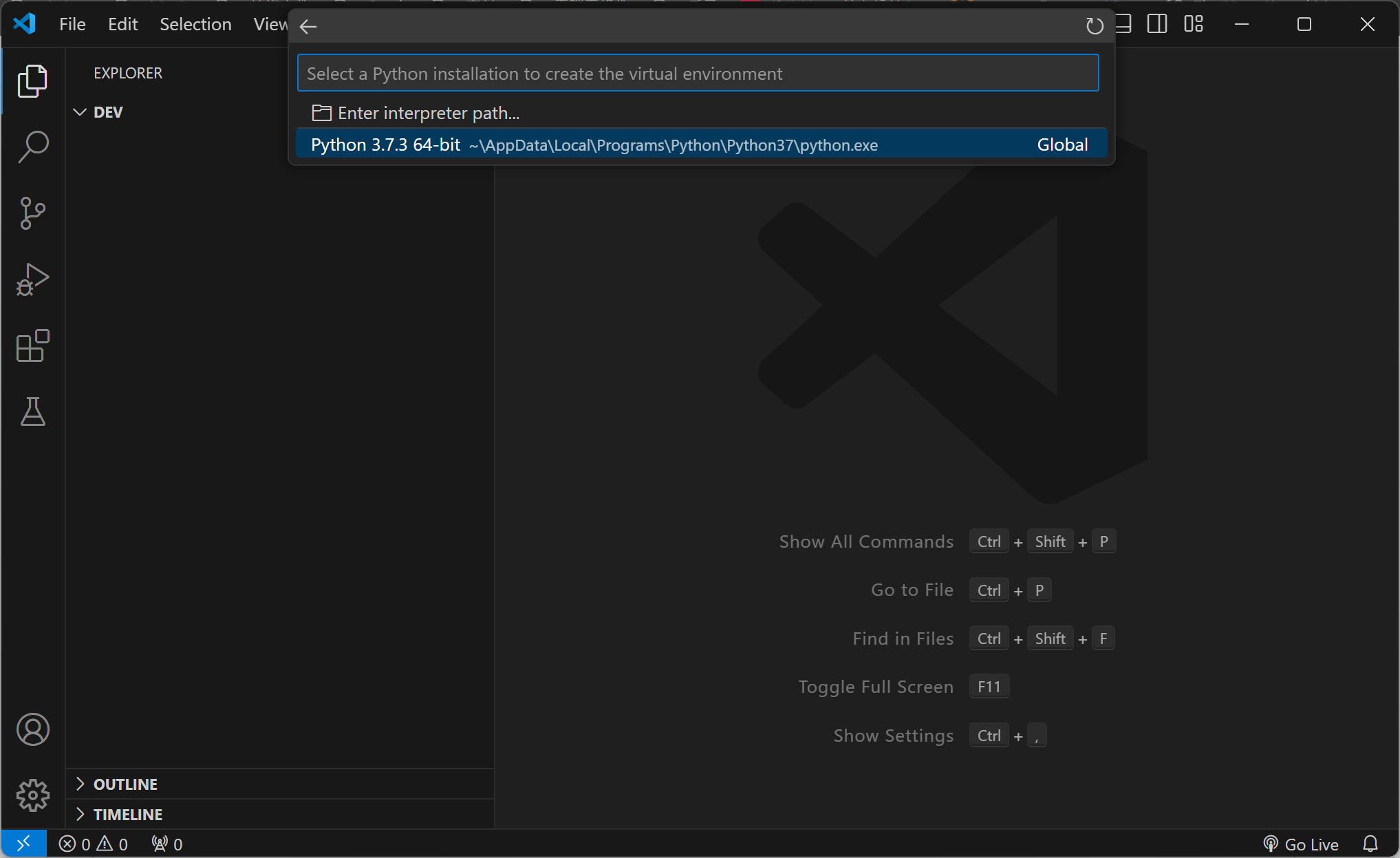 - 使用 Venv 並選擇已安裝的 Python ( 如果不止安裝一個版本,Venv 就有多個 Python 版本可以選擇使用 )