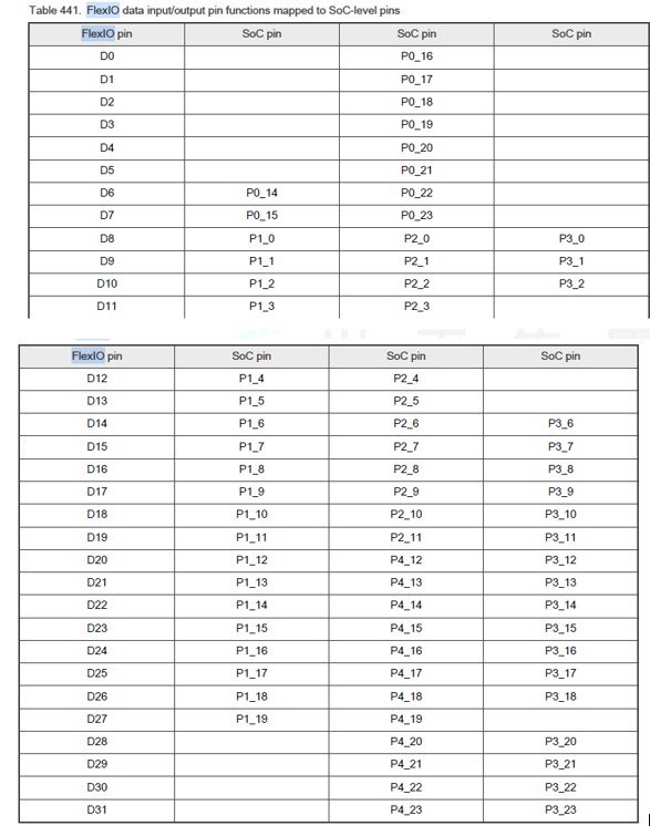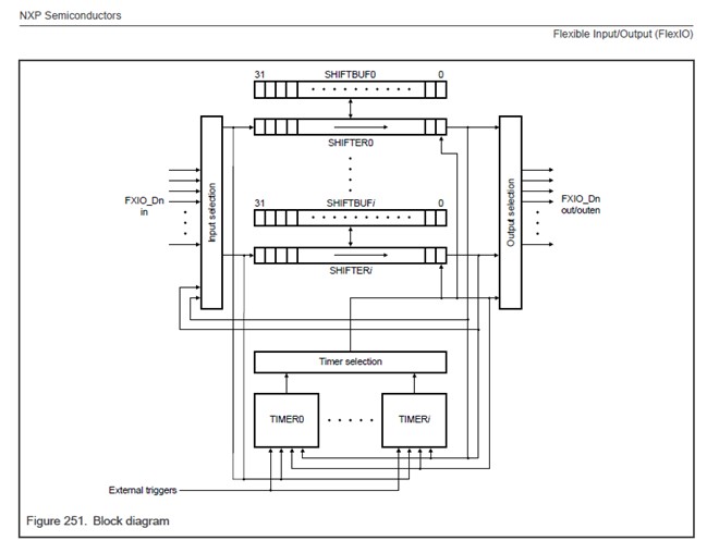 Flex IO 是可以自行規劃如何動作的 IO,是以 Timer 和 Trigger 的結合,透過不同的組合,來做出想要的波形。MCX-N236 的 FlexIO 配置「如圖 1.1 ( 註1 ) 」
