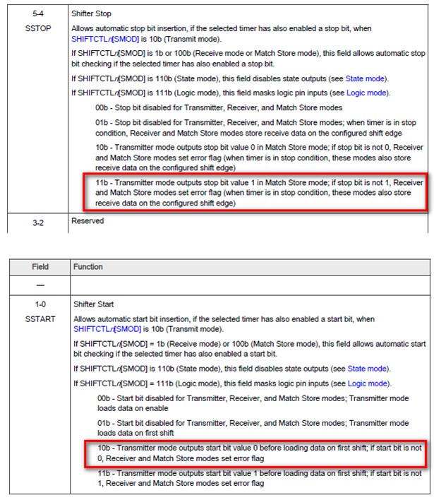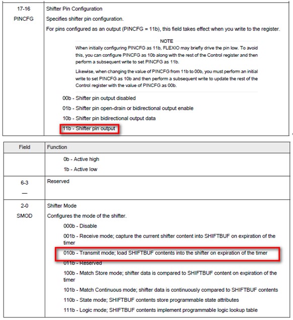FlexIO SHIFTCFGn register 的配置「如圖 3.1~3.2 ( 註1 ) 」