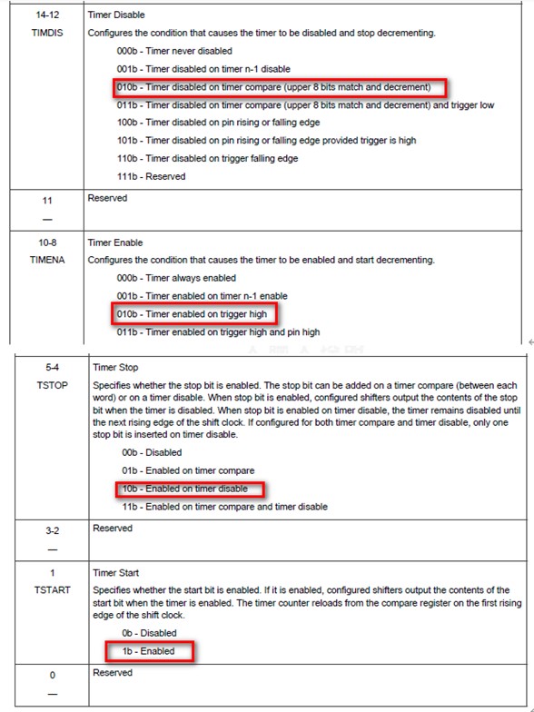 FlexIO TIMCFGn register 的配置「如圖 3.3~3.4 ( 註1 ) 」