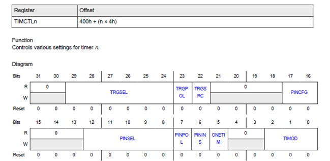 =>TIMCFGn = 0x0000 2222
