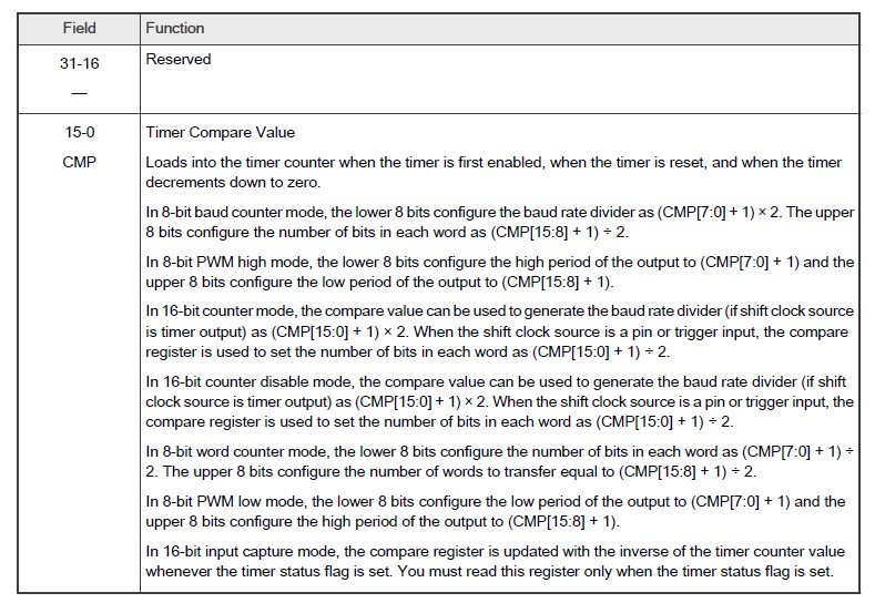 FlexIO TIMCMPn register 的配置「如圖 3.8 ( 註1 ) 」