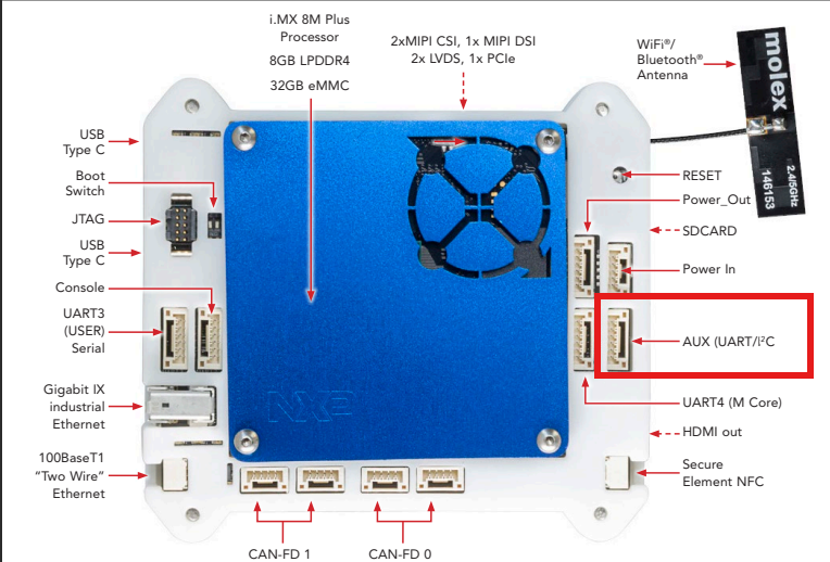 在線路中AUX 是腳位定義為UART4_TXD_DBG