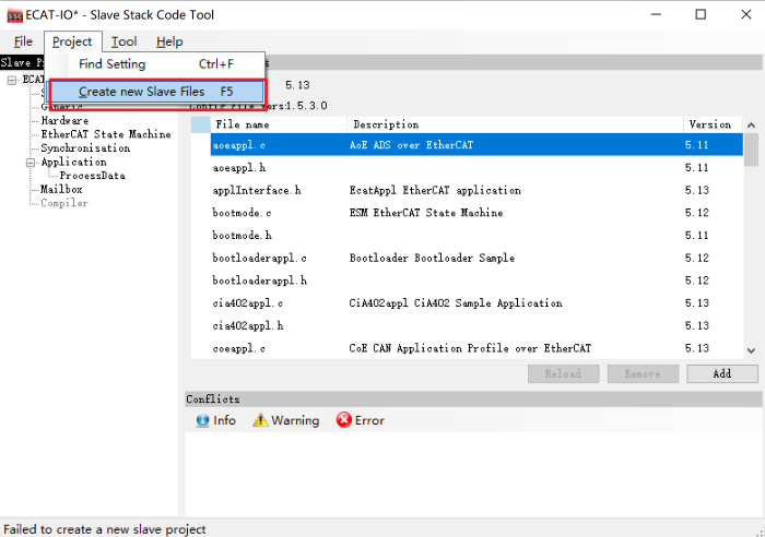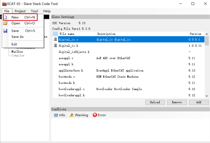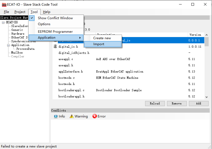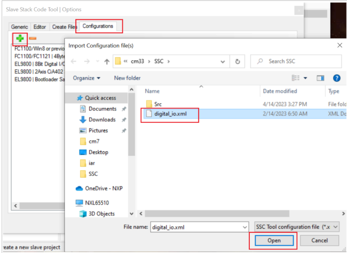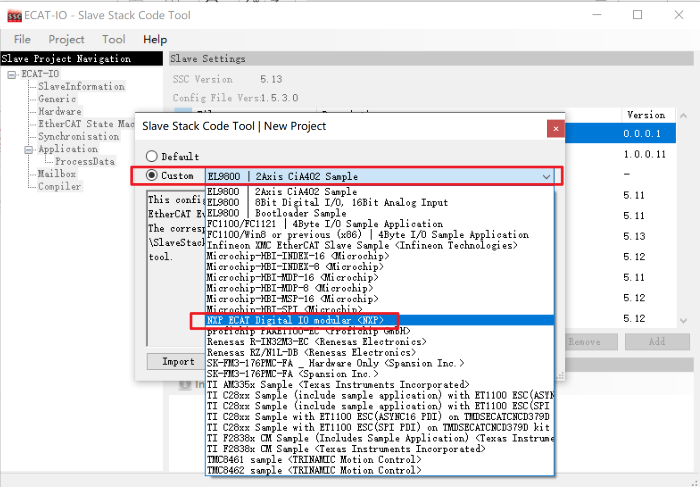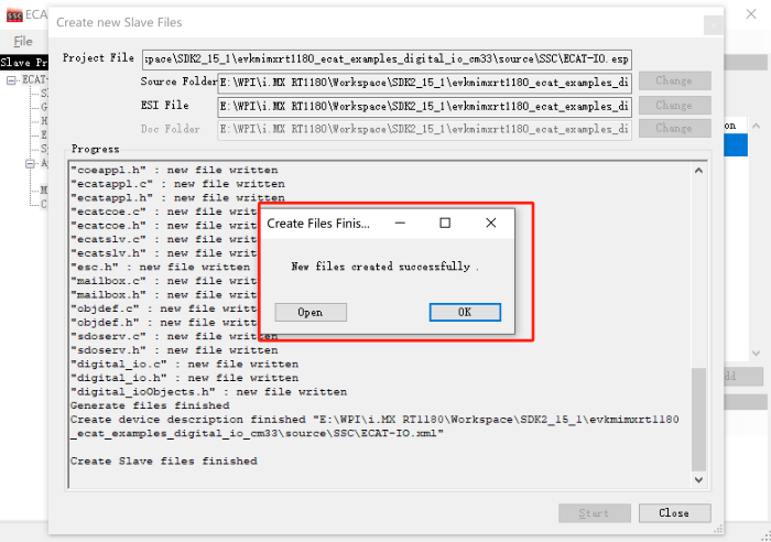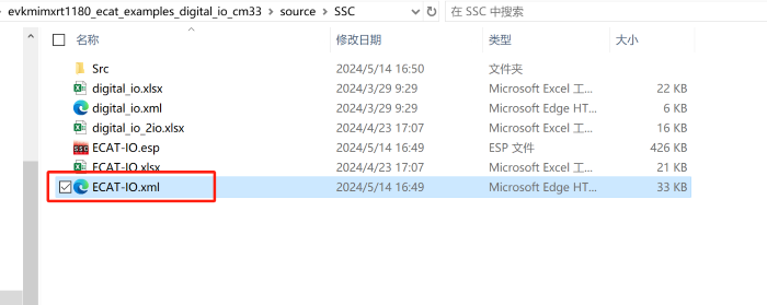 添加 NXP SDK Ecat 例程中提供的示例文件