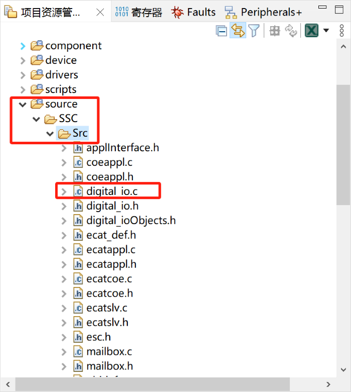 4. 刪除 MCUXPresso 工程中 SSC>Src 文件夾下的 digital_io.c