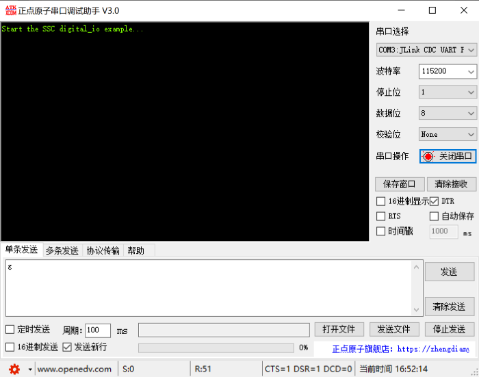 代碼編譯後燒錄到 EVK 中,可以看到串口助手列印一下信息