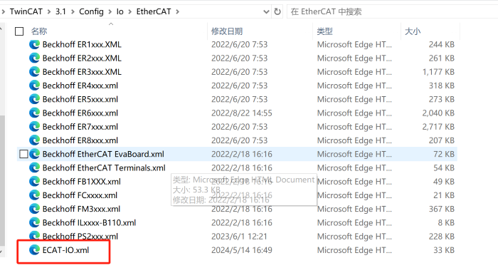 5. 複製工程中的從機配置文件 ECAT-IO.xml 到 TwinCAT 安裝目錄
