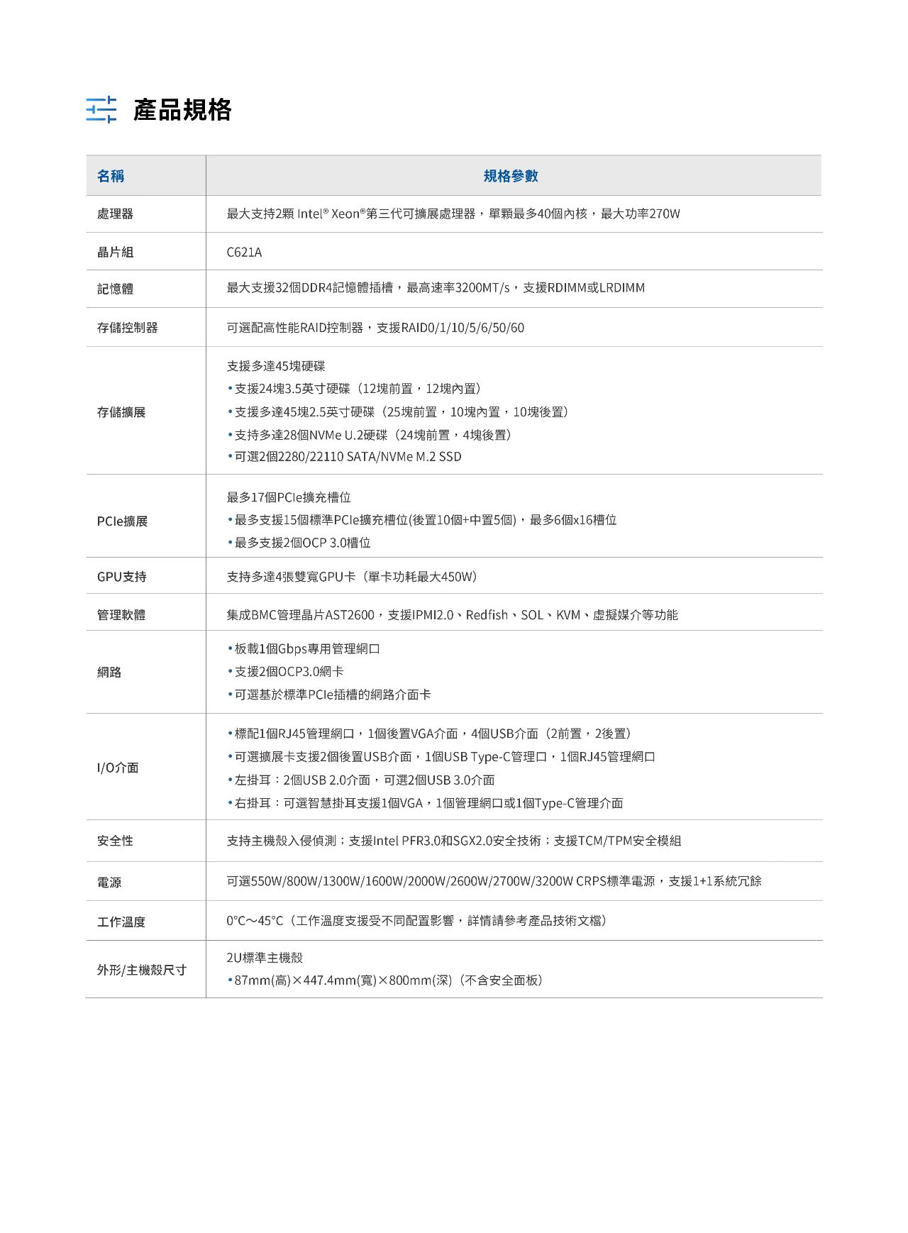 - 超高的硬體規格:最大支持PCIe槽位數量、GPU卡數量、硬碟數量,業界領先。