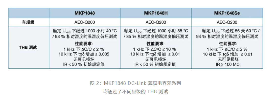 值得一提的是,能夠經受高濕、高溫環境的考驗,已經成為了 Vishay DC-Link 薄膜電容的“標誌性”的特點,其 MKP1848 DC-Link 薄膜電容器系列產品,均通過了不同量級的 THB 測試,以滿足不同環境應用的要求,為功率系統長期穩定的運行提供有力地支撐。