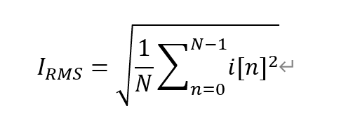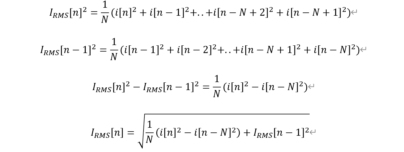 其中,N是樣本總數,它是一個常數,用於歸一化樣本的貢獻。i[k]是當前時刻的電流樣本,它的平方被加到前一時刻RMS值的加權和中。這種方法的優點是,它只需要存儲前一時刻的RMS值,而不是整個樣本序列,從而大大減少了存儲需求。