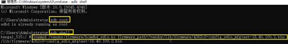insmod /vendor/firmware/bcmdhd_sdio.ko firmware_path=/vendor/firmware/4362c0-config_sdio_mfgtest-18.40.100.2.bin