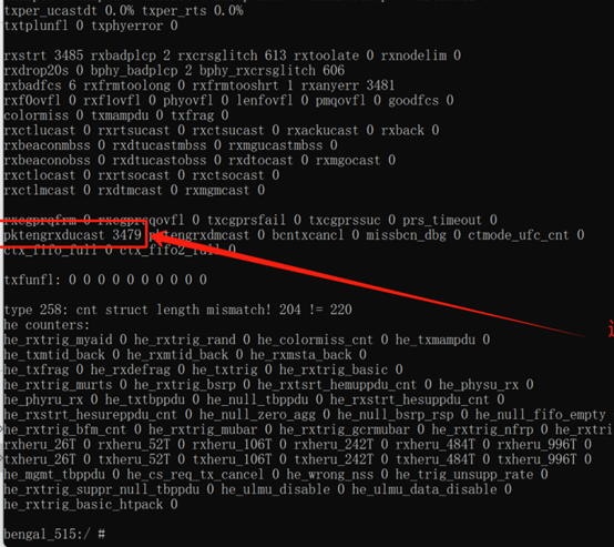 #check the counters register variation : pktengrxducastwl reset_cnts