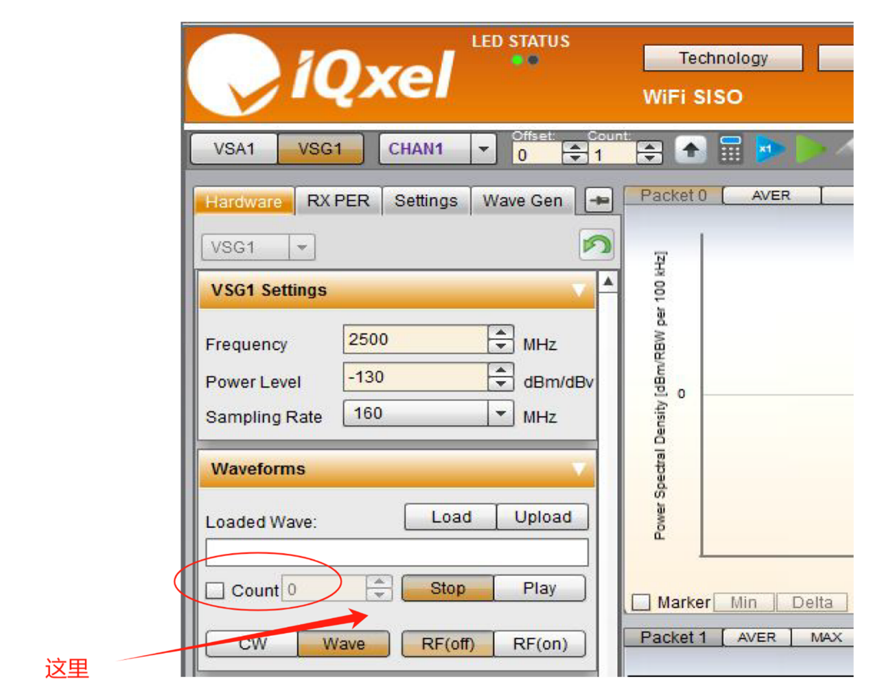 圖6為IQ儀器配置發包數量,發送功率大小和波形。