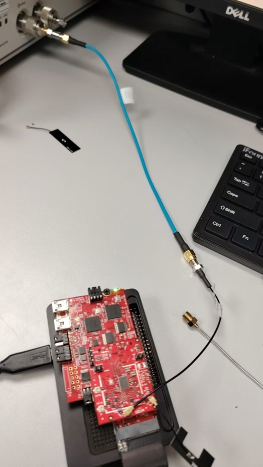 - 將板子的USB接口連接到電腦的USB埠,板子的RF輸出端通過高質量的RF線連接到測試儀器的RF輸入/輸出口,並計算好線損,如下圖