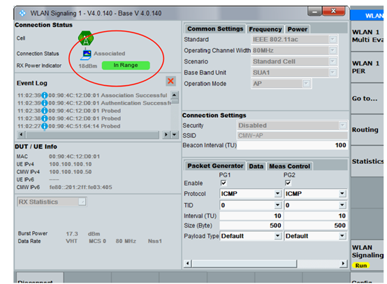- CMW500儀器開機,配置好相應的Standard,rate等,並等待板子的Wi-Fi連接。