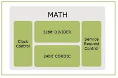 XMC1302中整合一個MATH協處理器,它完全獨立於CPU,工作在PCLK(64MHz)時脈下。 MATH協處理包含了一個32位元的DIVIDER和一個24位元的CORDIC。 DIVIDER單元實現32bit有符號/無符號除法。 CORDIC單元實作24bit三角函數運算。 DIVIDER和CORDIC單元可並行工作,該模組減輕了CPU的負荷,對於實現無感FOC控制演算法提供了良好的支援。