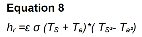 其中ε是發射率,σ是Stefan-Boltzmann常數,TS是表面溫度,Ta是環境溫度。