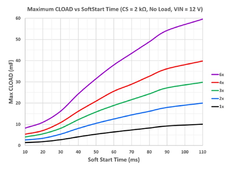 5.並聯個數軟啟動時間與允許最大電容負載的關係