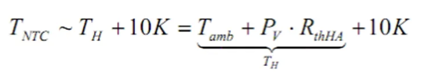 2.但NTC的溫度會比散熱器上測量的溫度來得高。由經驗可知,對於電力電子設備,散熱器的溫度和NTC的溫度的差值約等於10K的溫度左右。