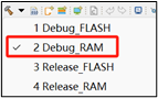 - 推薦在編譯程序時選擇 “Debug RAM”,我們將固件下載到 RAM 中,避免 Flash 分區 RWW 問題。