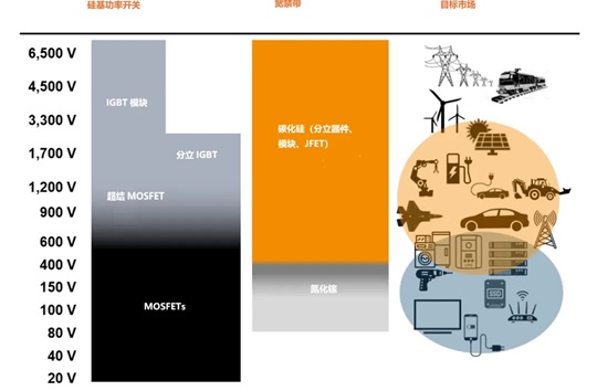 眾多終端產品製造商已選擇碳化矽技術替代傳統矽技術,基於雙極結型電晶體(BJT)、結型場效應電晶體(JFET)、金屬氧化物半導體場效應電晶體(MOSFET)和絕緣柵雙極電晶體(IGBT)等器件開發電源系統。這些器件因各自特性(優缺點不同)而被應用於不同場景。
