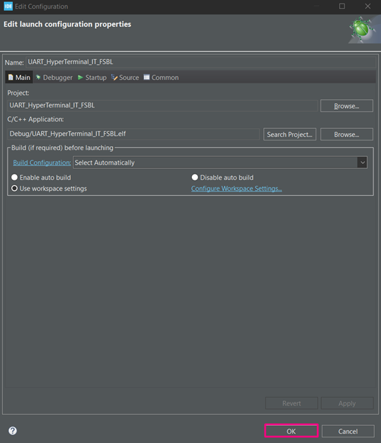- 在啟動配置窗口中,點擊 [OK] 確認,開始加載固件至設備。