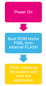上電 → boot ROM 從外部閃存加載 FSBL → FSBL 初始化系統並運行應用程序