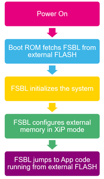 上電 → boot ROM 加載 FSBL → FSBL 配置外部存儲器為 XiP 模式 → 跳轉至外部閃存中的應用程序