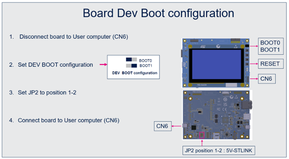 - 確保開發板已正確配置為 DEV Boot 模式(需檢查跳線設置,如 JP2 置於 1-2 位置)。