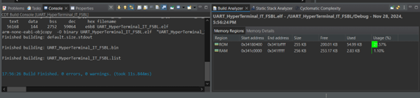 2.導入項目後需注意,示例中的鏈接腳本已預先配置為將 FSBL 定位在AXSRAM2 區域。該腳本將 511 KB 的區域劃分為: