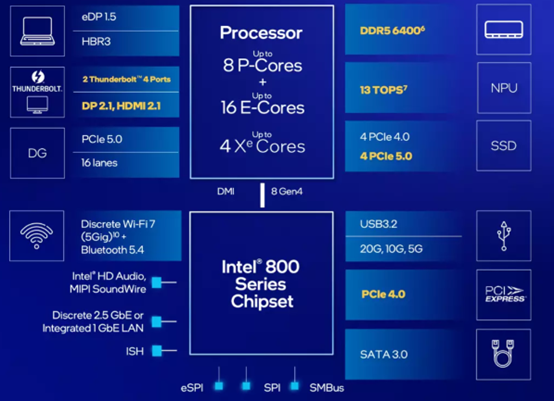 在資料傳輸和設備連接方面,Intel® Core™ Ultra 9 Processor 285K同樣表現出色。它集成了 Thunderbolt 4 介面,能提供高速的資料傳輸速率,滿足用戶外接高解析度顯示器、高速移動硬碟等設備的需求,實現 4K 視頻的流暢傳輸和大檔的快速拷貝。同時,該系列處理器支援多達 20 個PCle 5 通道,資料傳輸頻寬大幅提升,無論是連接高性能顯卡、高速固態硬碟,還是其他擴展卡,都能充分發揮設備性能,減少資料傳輸瓶頸。此外,部分型號還支援分立 Thunderbolt 5 介面,進一步拓展了設備的連接能力和相容性,為用戶打造出一個高效便捷的設備互聯生態。
