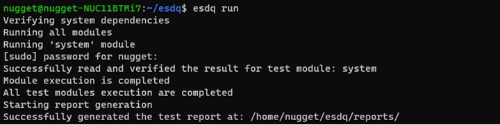 - 執行英特爾 ESQ 測試執行。此命令運行包中列出的測試模組。