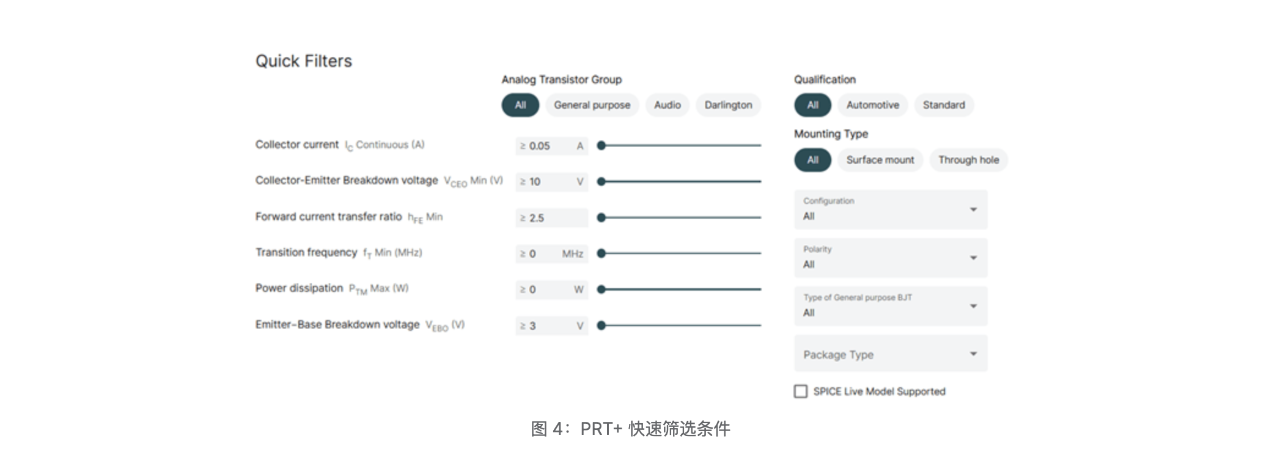 為設計找到合適的產品並不容易,需要查閱大量產品手冊,比較各種規格和功能。產品推薦工具 PRT+ 旨在幫助設計工程師從安森美的產品組合中找到合適的產品。PRT+ 採用排名算法,可以根據半導體元器件的品質因數及用戶選擇的快速篩選條件來推薦產品,這也是這款工具的主要優勢。