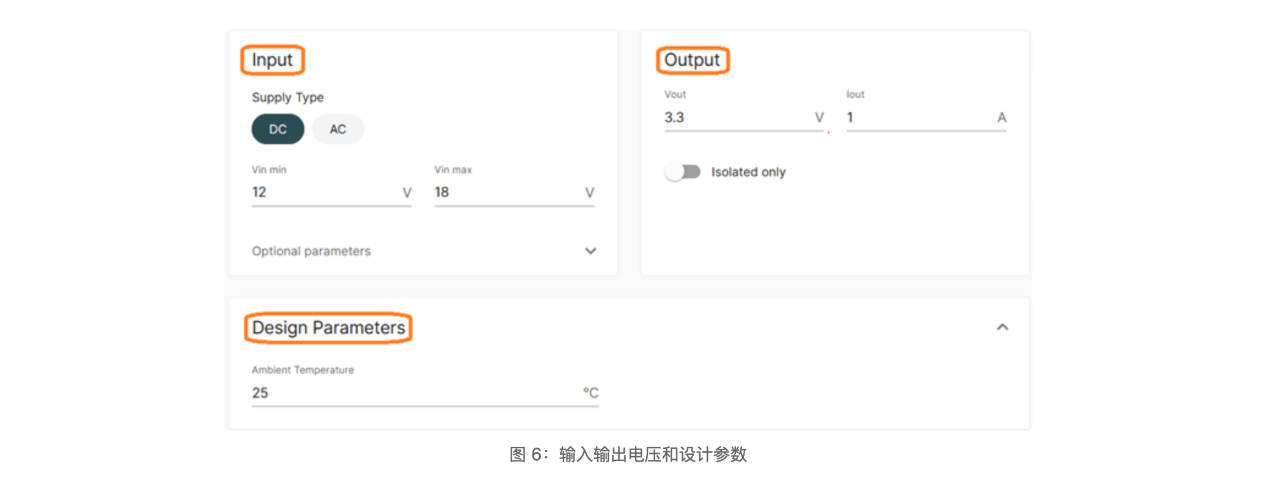 WebDesigner+™ 是一款輔助設計電源的在線工具,可以根據輸入輸出要求,推薦電源管理器件和相關電氣器件。所需參數包括:最小和最大輸入電壓、環境溫度、輸出電壓及電源的輸出電流。該工具支持的輸入參數工作範圍如下: